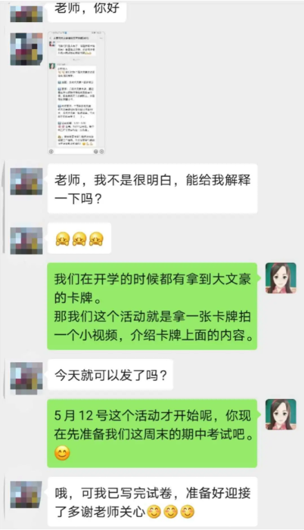 手持一张大文豪卡牌,通过自主学习讲解卡牌相关的故事内容,以拍视频的方式发到群上,并在朋友圈打卡。