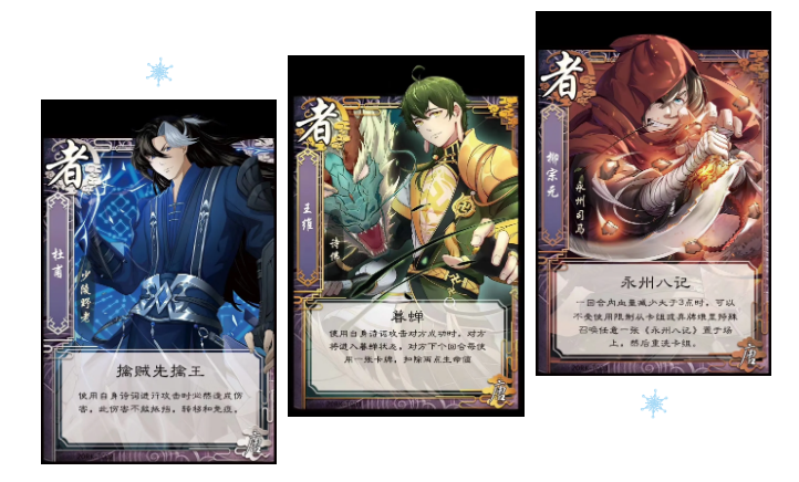 大文豪卡牌的设计者用心良苦,每一张的卡牌设计都与诗人、诗词、古文或成语相关联。