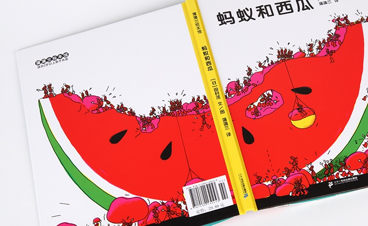夏天的一个下午,几只小蚂蚁发现了一块大西瓜,这绝对是千年一遇的天降美食啊 ,可以使蚂蚁王国的万千子民在好长一段时间内都不必外出辛苦觅食了。可是,怎么搬回去呢?别急,只见领头的小蚂蚁一声令下,蚂蚁军队倾巢出动,争先恐后,或抬或搬,或滚或背,或挖或铲,三个一伙,五个一群,各出奇招,一点一点的,竟然把大西瓜全部运送回家了!